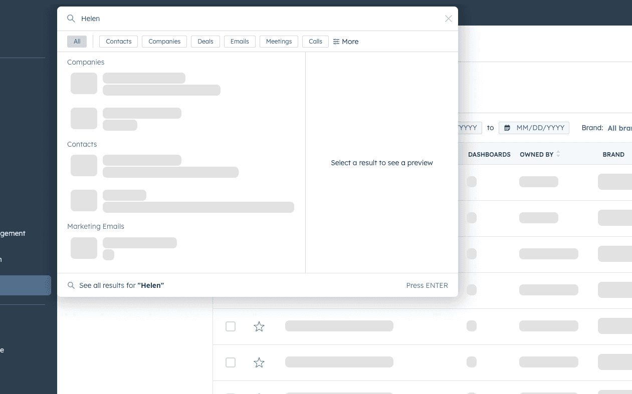 I led a 6-month turnaround of HubSpot’s Global Search team. The work shipped in two phases: we first improved relevance and performance in the existing two-app experience, then designed and shipped a consolidated platform redesign that expanded indexed scope without additional infrastructure spend and enabled early AI features.